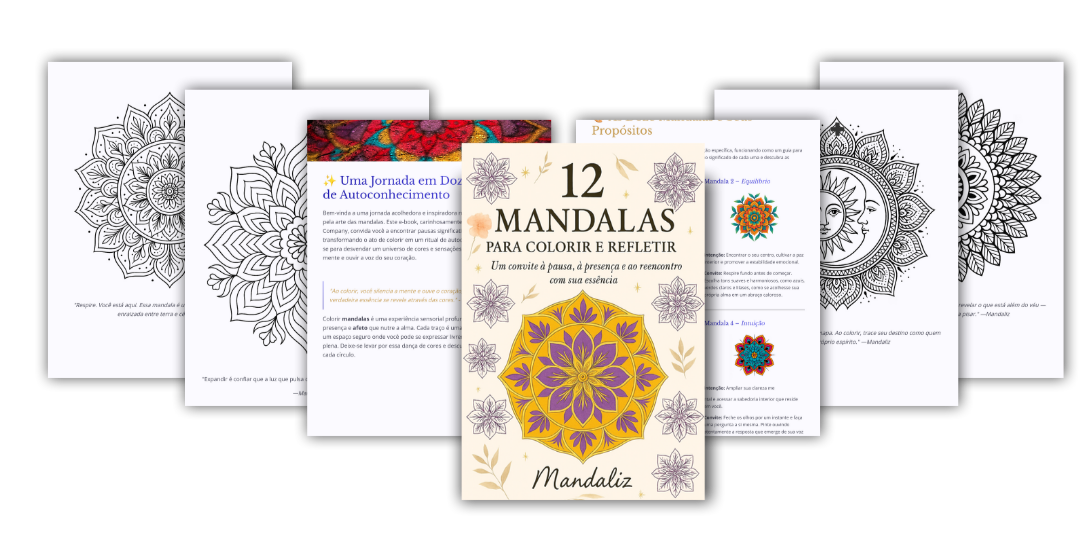 É um convite para você voltar para si mesma com frases que tocam a alma e mandalas que acalmam a mente.